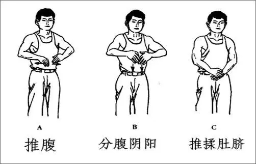 先從心口窩向下推,然后從肋骨兩側(cè)向前下方推,碰到硬結(jié)就仔細(xì)按揉。人體腹部有九條主要經(jīng)絡(luò),這樣推可謂一舉多得。推腹的時候要使腹肌放松,呼吸放松,不能自己跟自己較勁,憋得臉紅脖子粗的,就不對了。